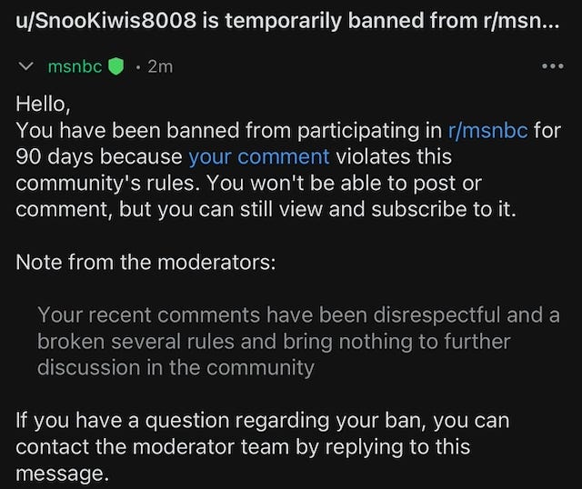 I Was Banned from the MSNBC Subreddit for 90 Days (And I’m Still Giggling About It)